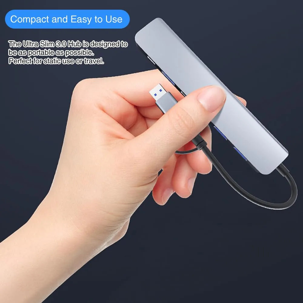 【Friendly Design】: The built-in smart chip avoids overcurrent, overvoltage, short circuit and high temperature. Aluminum shell with a nice metallic finish. Weighing around 0.3LB and 0.4 inches thin. Ultra Slim 3.0 Hub is designed to be as portable as possible. Perfect for static use or Business Travel