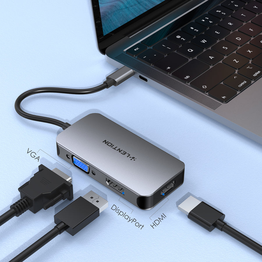 LENTION 3-in-1 USB-C Hub Video Adapter with HDMI, DisplayPort, VGA|Lention (CB-CE54) (AU/UK/DE/EU/AE Warehouse In Stock)