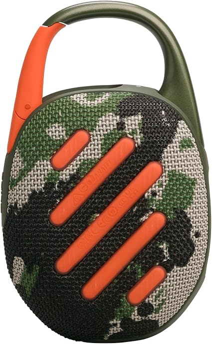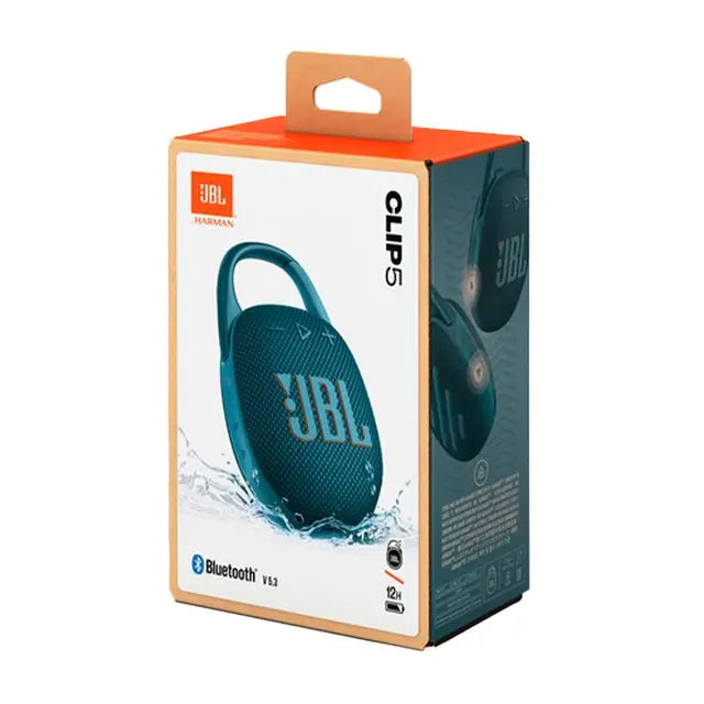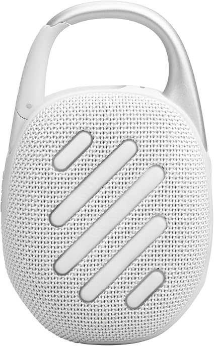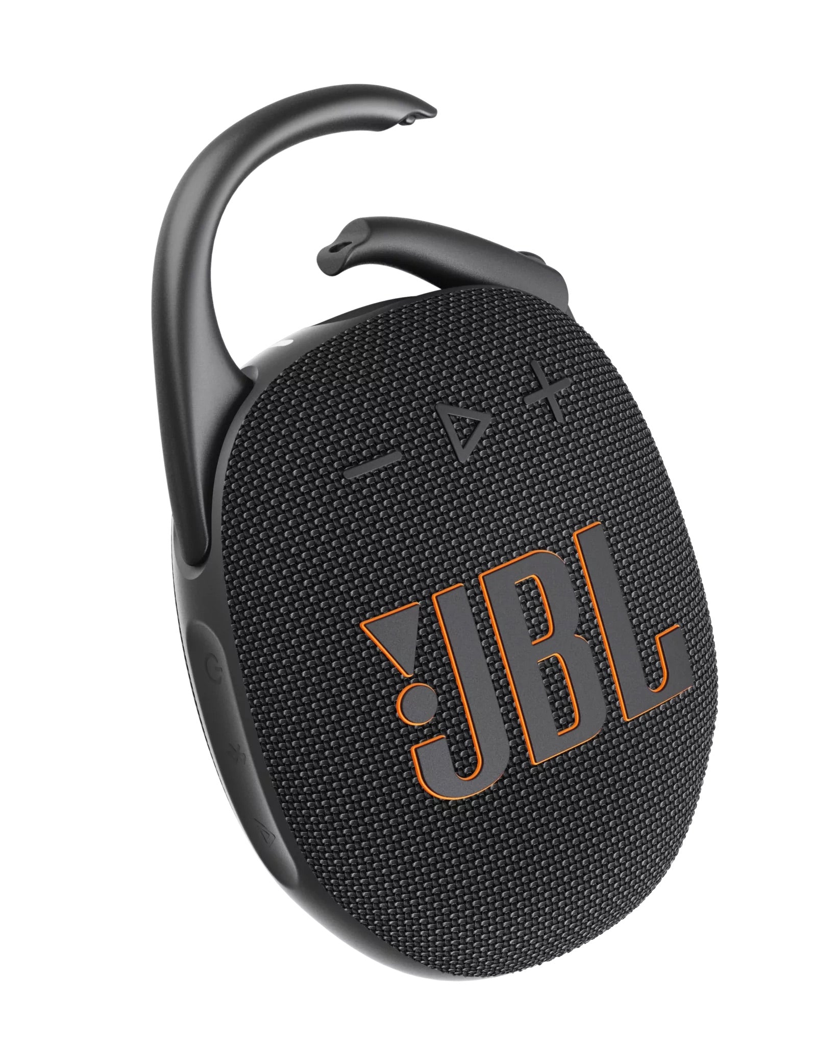 The JBL Clip 5 has been redesigned for greater accessibility and portability. The improved carabiner, increased driver power, and consistent bass at all volumes make it an ideal travel companion. It features 12 hours of playtime, Bluetooth 5.3, an IP67 rating, and a multi-speaker connection via Auracast.