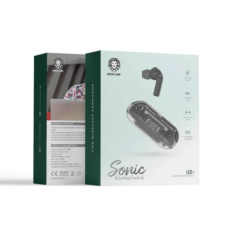 With the Green Lion Sonic Wireless Earbuds, you can enjoy outstanding audio and easy use. These earphones are designed for a great hands-free stereo experience and provide up to 4 hours of continuous playback to make sure you never miss your favorite music or calls. They offer a perfect wireless connection with a range of up to 10 meters and are powered by the most recent Wireless Version V5.3. These earbuds are equipped for your on-the-go lifestyle with a 30mAh headphone battery and a 200mAh charging case battery. The Bass Sound Effect produces rich, powerful music and the LED screen power display lets you monitor battery life and adds a useful touch to these chic and compact earbuds. The Green Lion Sonic Wireless Earbuds, available in 4 colors (black, white, pink, and green), will elevate your musical adventures.