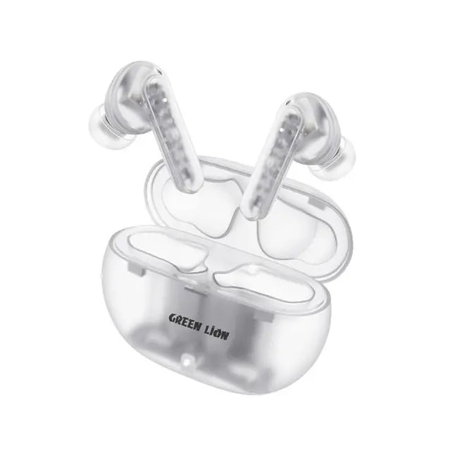 The Green Lion Transparent Pro 2 Wireless Earbuds in a beautiful white color will change your listening experience. Enjoy continuous music every day with up to 7 hours of playback and an extra 30 hours when connected with the charging case. Experience crystal-clear, high-fidelity sound quality with every beat because of its wide frequency range of 20 Hz–20 kHz and transmission range of 10 meters. With an amazing 45 hours of standby life, these earphones make sure they're ready when you need them. Enjoy seamless communication and simple device pairing thanks to its V5.3 Bluetooth technology. These earphones are IPX4 water-resistant. They can withstand little drops and sweating. it has four ENC-equipped microphones and a 400mAh battery. This makes them ideal for active lives. The touch controls are multifunctional. You can use them to quickly scroll through your music and calls. The comfortable design ensures they are easy to use for long periods. Enjoy hands-free calls and long listening sessions with the Green Lion Transparent Pro 2 Wireless Earbuds. They are the perfect sound partner.