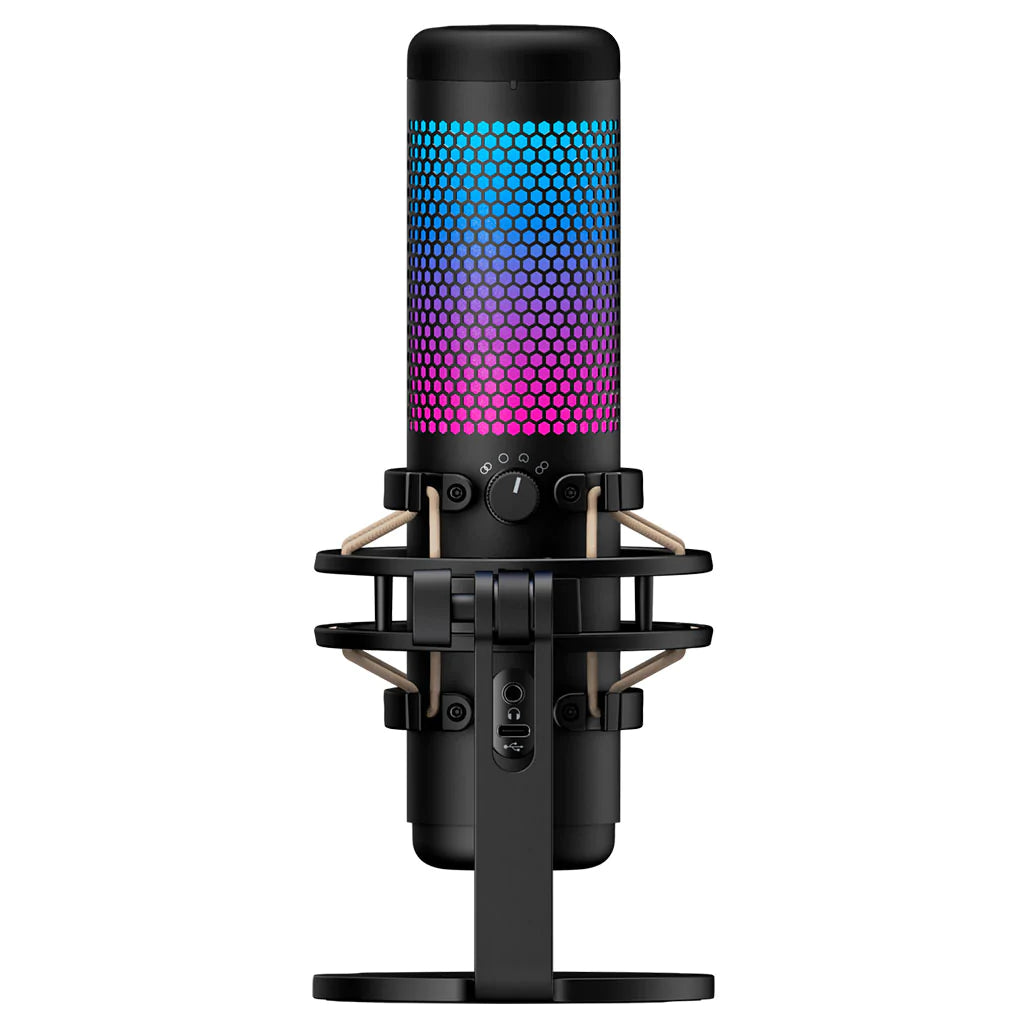 The HyperX QuadCast S is a USB condenser microphone that both sounds great and looks great. The supremely stunning RGB lighting and dynamic effects will add style and flair to any stream or setup, and is customizable via HyperX Ngenuity software. The QuadCast S is an all-inclusive mic, featuring an anti-vibration shock mount to help quiet the rumbles of daily life and a built-in pop filter to muffle plosive sounds. Instantly know your mic status with the LED indicator, and simply tap-to-mute to avoid awkward broadcasting accidents. With four selectable polar patterns, this mic’s prepared for nearly any recording situation and also features a gain control dial to quickly regulate input sensitivity. The included mount adapter fits 3/8” and 5/8” thread sizes, compatible with most stands. QuadCast S is certified by Discord and TeamSpeak so you can ensure that your microphone is broadcasting loud and clear for all your followers and listeners, and you can also monitor your mic in real time using the convenient headphone jack on the back of the mic. It’s multi-platform compatible, so you can deliver quality sound output whether you’re connecting to a PC, PS4, or Mac.