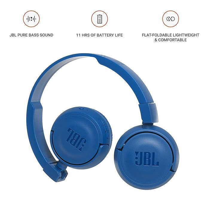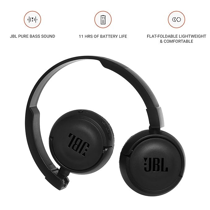 JBL T460BT by Harman, Wireless On Ear Headphones with Mic, Pure Bass, Portable, Lightweight & Flat Foldable, Voice Assistant Support for Mobiles (Black)