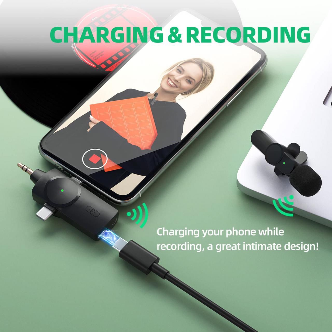 - 【Compact and Portable】wireless lavalier microphone for iphone support 1 people to use at the same time,a single microphone weighs only 8.1g,and the receiver weighs only 4.6g,it's small and easy to carry.In addition,it is equipped with a portable charging box,you can charge microphones.The microphone can pick up the sound for up to 6 hours after charged, which can meet your recording and live-streaming needs well.