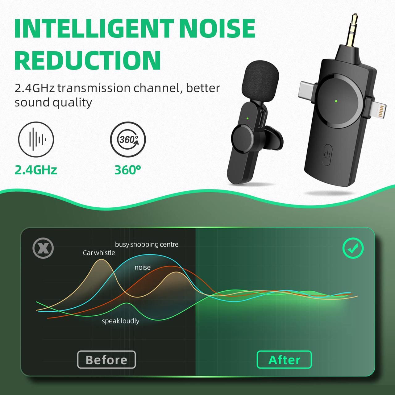 - 【Real-time Stable High-Definition Sound Effects】 2.4GHz transmission frequency,intelligent sound recognition system, synchronized high-definition human voice,wireless microphone can achieve a wireless transmission distance of 1200ft,quickly convey stable high-definition sound effects