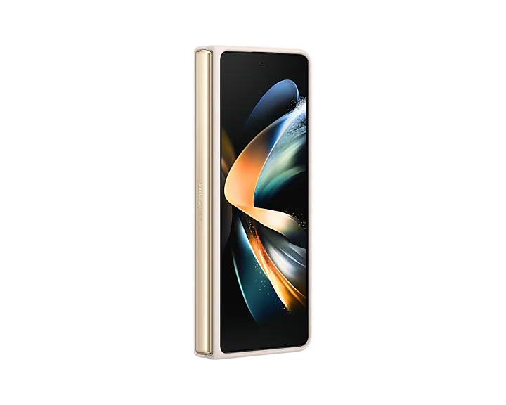 Covered in sleek luxury. The Slim Standing Cover stylishly wraps around the front edge of your Galaxy Z Fold4 so that both sides are covered without masking its sleek design.