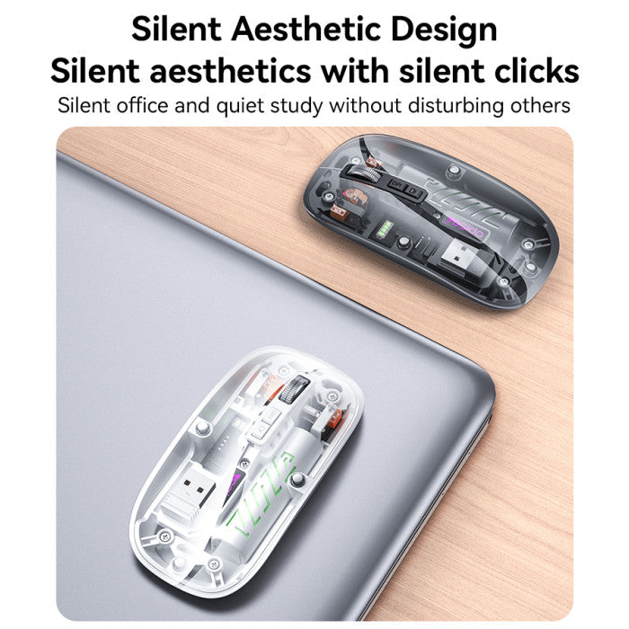 KB29 Mute Button Dual-mode Connection Ergonomic Design Crystal Transparent 2.4G+BT Wireless Mouse