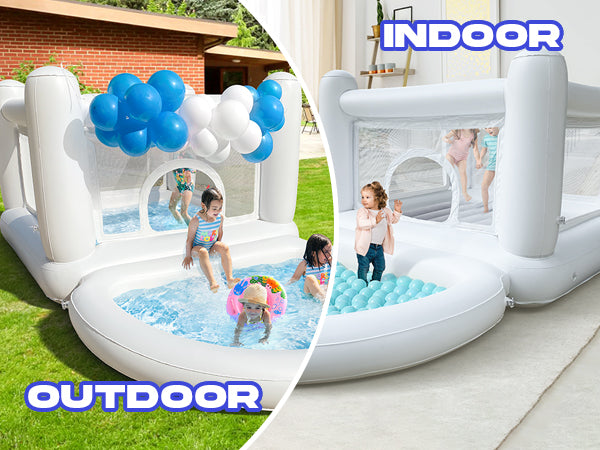 Quality Assurance: The bounce house for children aged 3-6 provides entertainment in jumping and swimming pools. There is a mesh net around the jumping area to protect your child from falling when jumping. The safety net is connected by four inflatable columns for stable support and enhanced safety.