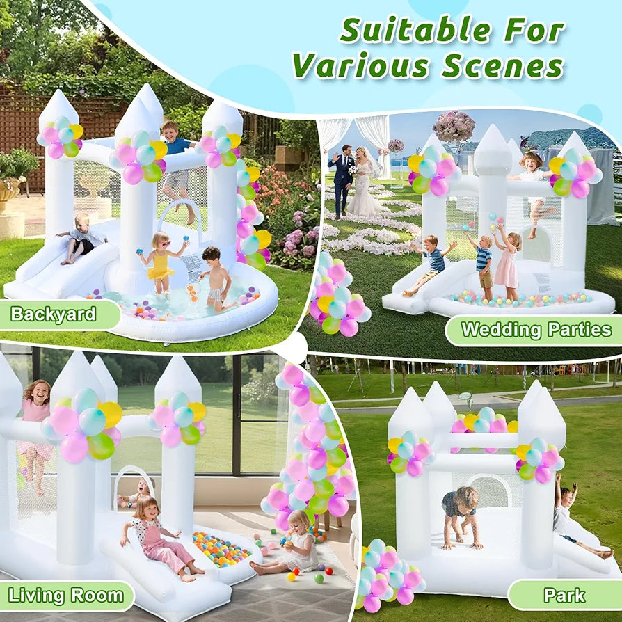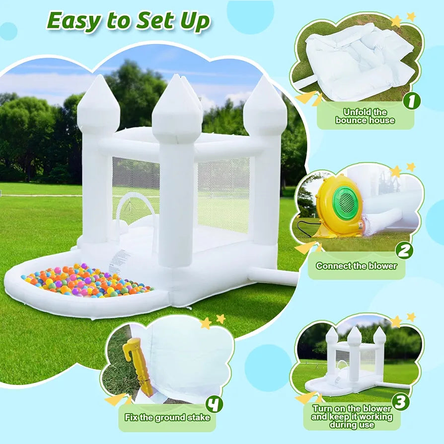 Aonesy White Bounce House,Inflatable Bouncy Castle for Kids with 370W Air Blower, Small Bounce Hose with Ball Pit Slide for Kids Indoor Outdoor Party Wedding Playhouse
