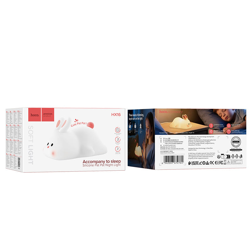 Light up your nursery with the adorable HX16 Night Light. Made from soft, squishy silicone, this lamp is designed to be touched, patted, and squeezed. With a simple tap, you can adjust the brightness to create the perfect soothing atmosphere for breastfeeding, reading, or helping your little one fall asleep.