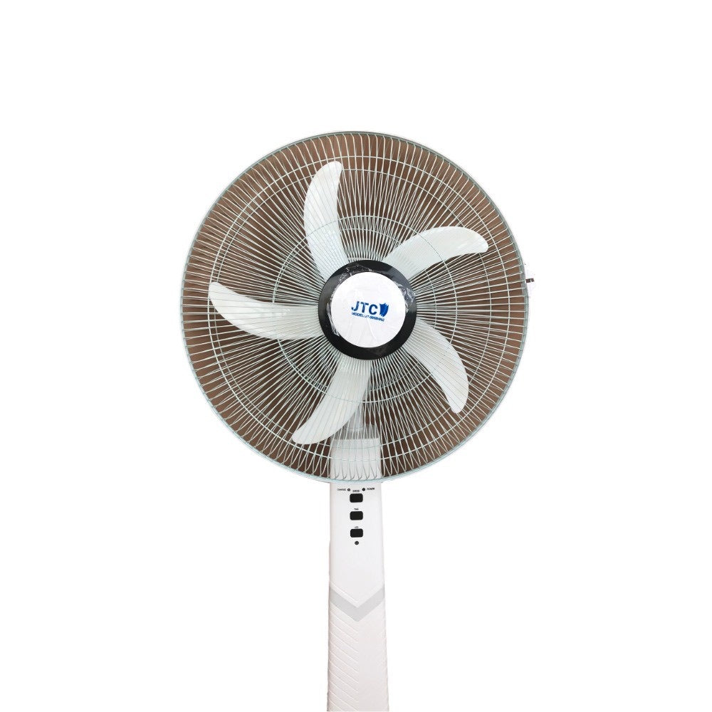 JTC, Up to 30 Hours On Battery, 18" Rechargeable Floor Fan, Led Light, 3 Speeds, AC/DC Operated, Remote Control, Timer, Built-in USB charger, Can Be Charged By Solar Panel