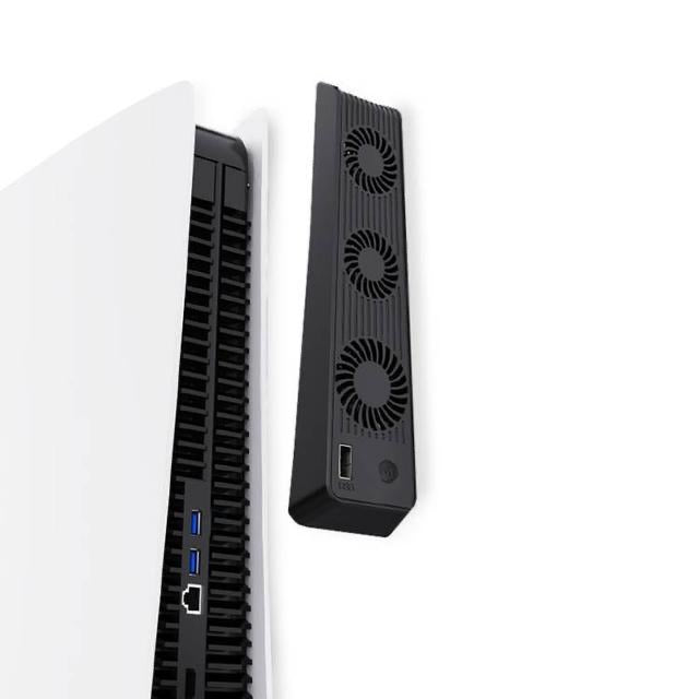 The PS5 cooling fan is specifically designed to prevent your console from overheating during long gaming sessions. In addition, this super magnificent device is compatible with both the PS5 disc and digital editions, making it a versatile accessory. Its impressive features further enhance its functionality. Firstly, the fan incorporates three built-in fans with adjustable speed levels, allowing you to select the desired cooling intensity. These fans work collaboratively to circulate air around the console, effectively maintaining its temperature. Moreover, the fan is equipped with a blue LED light that serves as an indicator when it is activated. This LED light also turns red to alert you if the console's temperature exceeds a certain threshold. To power the fan and activate the LED light, it uses a single USB input. Additionally, it provides an extra USB port, which can be utilized for data transfer at 480 Mbps or for charging your gaming stick or headphones.