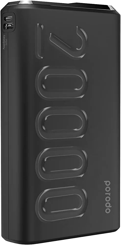 Portable power bank 20000mAh 20W with USB-C PD input and output, power delivery quick charge 3.0 touch sensor power button, portable charger compact design, LED digital display, touch sensor digital display for a more sophisticated feel while powering on and checking battery reserve. Intelligent IC makes sure your device is charged at optimum charging current. Embedded protection mechanisms prevent your device from over-charging and the power bank from overheating.