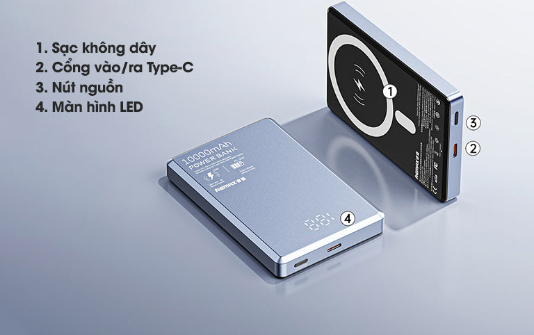 The 10000mAh 20W Remax RPP-109 wireless power bank is a product that fully converges the elements of features, design, and safety. With its large capacity, fast charging capabilities, and convenient wireless charging, it is an ideal choice that you should not ignore.