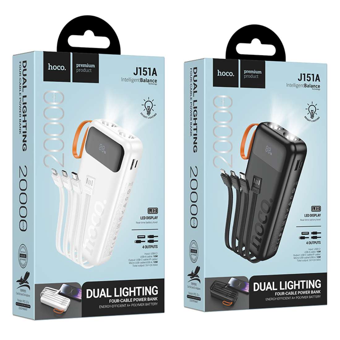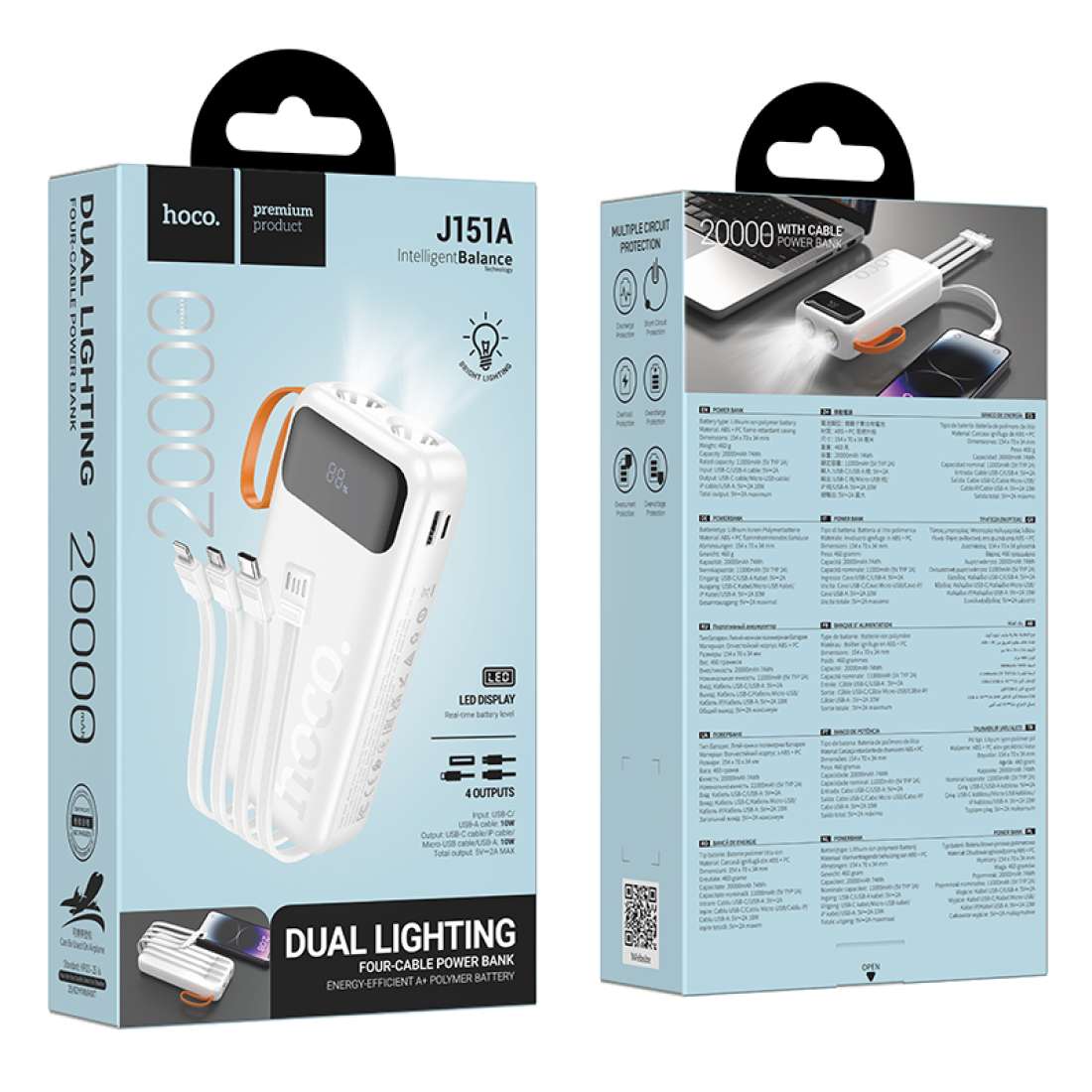J151A Spirit four-cable power bank with dual lighting (20000 mAh)