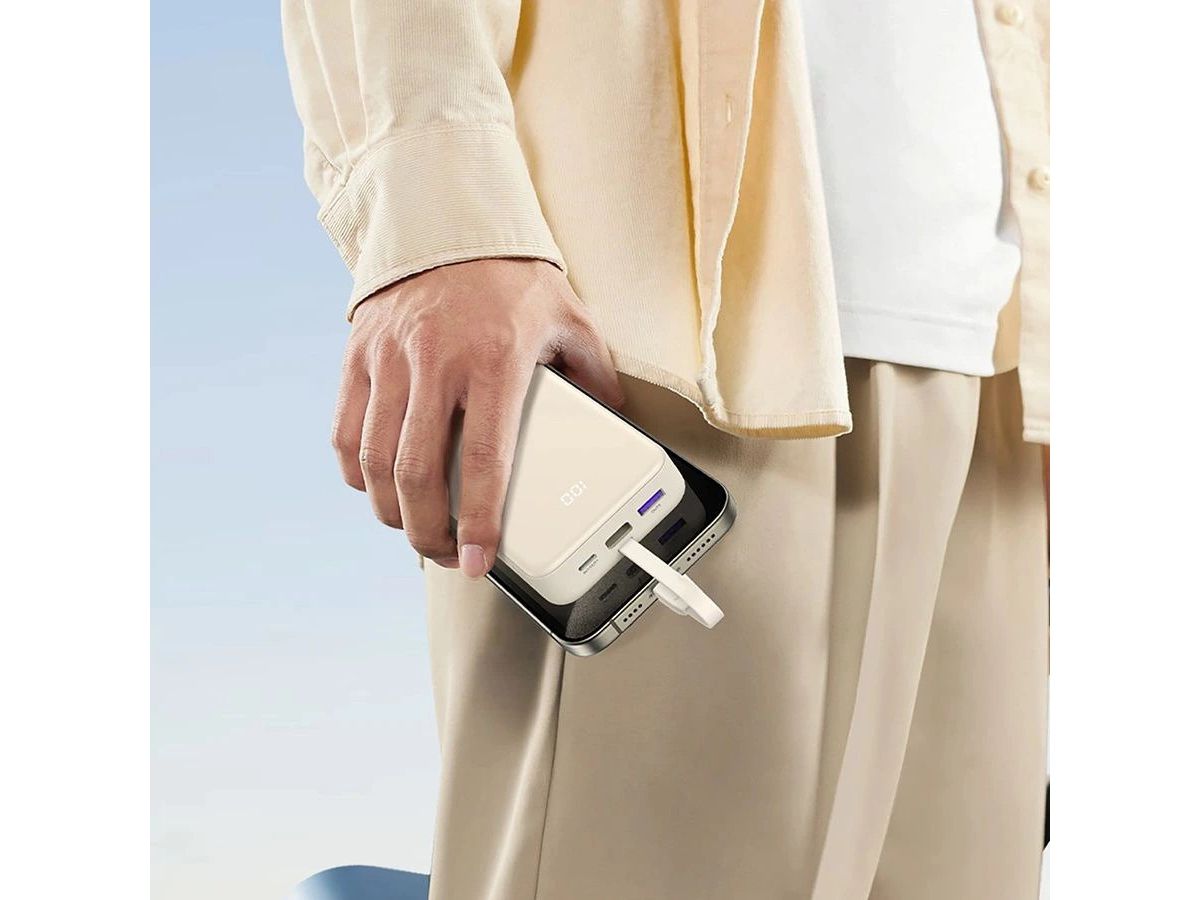 The UGREEN 20000mAh 30W PD power bank is a versatile and powerful charging solution for users who need reliable power on the go. Equipped with an integrated USB-C cable, it eliminates the need to carry extra cables, making it convenient and less bulky. The power bank supports Power Delivery (PD) fast charging up to 30W, allowing for quick charging of smartphones, tablets, and even laptops. The USB-C and USB-A ports, along with the integrated cable, allow you to charge up to three devices simultaneously, making it ideal for multitasking professionals and travelers. The LED digital display shows the battery status in real time, so you're always informed of the remaining power. Compact and lightweight, the PB521 is easy to carry without compromising performance. Its robust safety features, including overload and short-circuit protection, ensure a safe charging experience for all your devices.