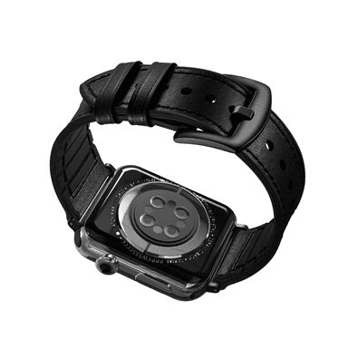 Porodo iGuard PDLEASIL44-BK Adjustable Leather + Silicone Lightweight Stylish Watch Band For Apple Watch 42/44/45mm - Black