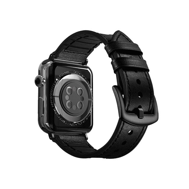 Porodo iGuard PDLEASIL44-BK Leather + Silicone Watch Band For Apple Watch 42/44/45mm - Black