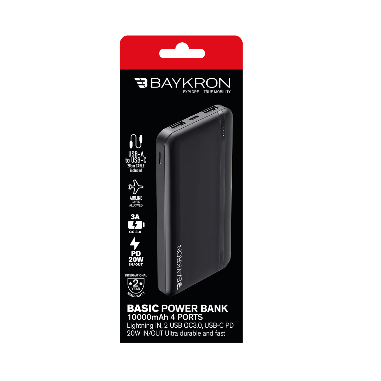 QUALITY - Built with a durable, easy-to-clean matte PC + ABS material and a long-lasting polymer battery, the BAYKRON Basic Power Bank offers both reliability and resilience for everyday use.