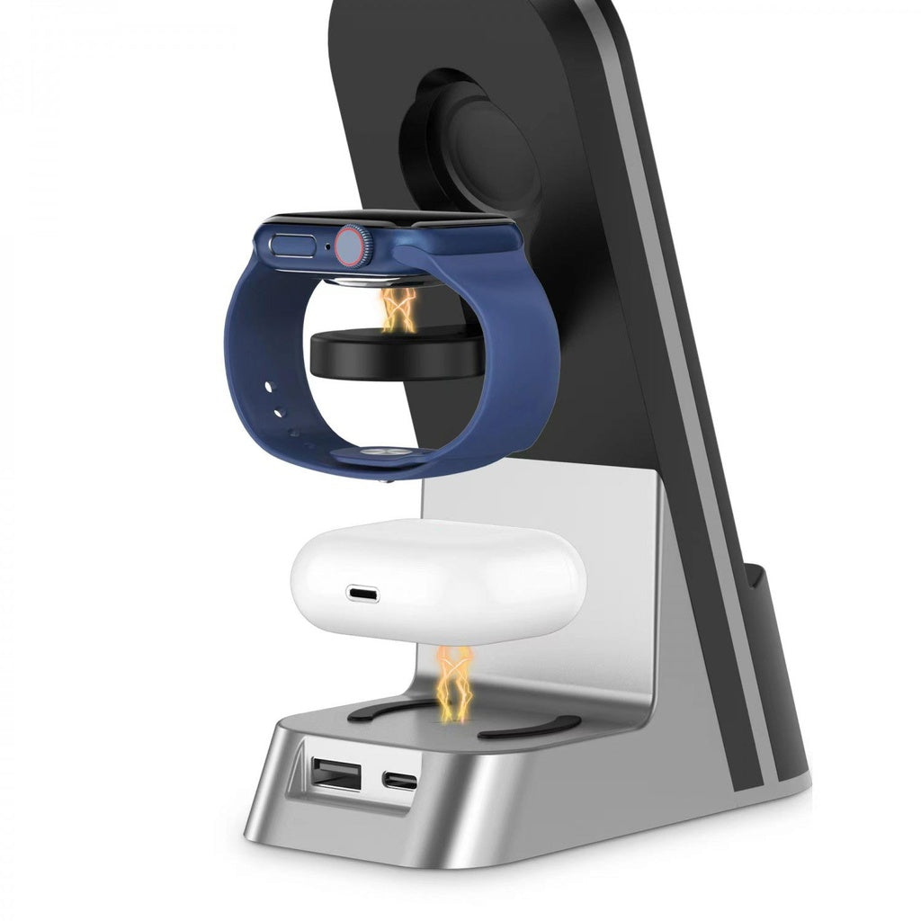 Mainly, it is operated as a high-speed wireless charger that delivers 15 W of power, but it can be used much more than that as it has a headphone and watch stand, a USB port, and a timer. Plus, it has a built-in dual coils so you rotate it effortlessly as it is extremely flexible