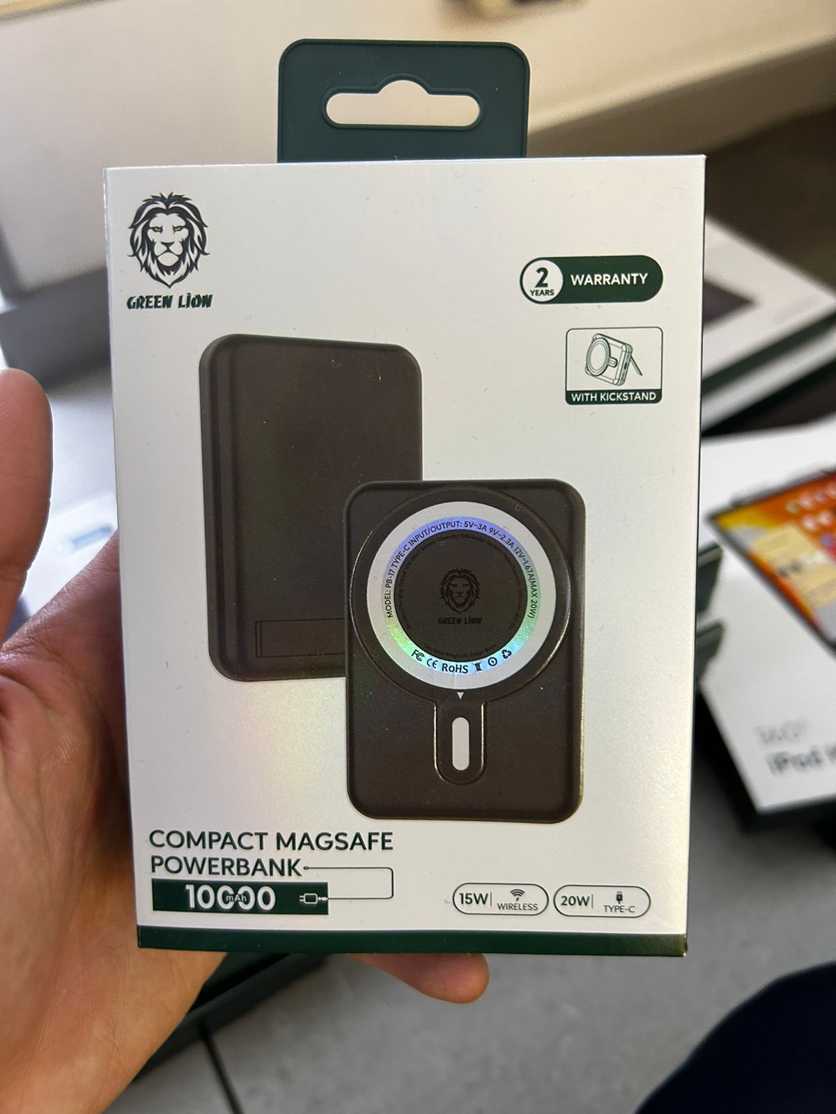 Green Lion Compact Magsafe Powerbank 10000mah 15w Pd 20w With Kick Stand - Black