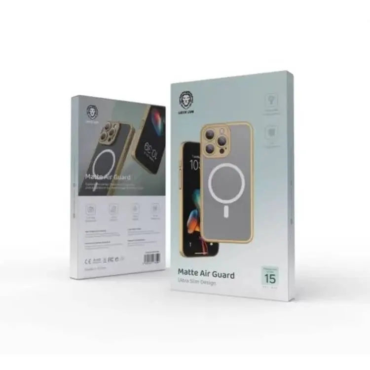 Learn about the Green Lion Matte Air Guard MagSafe Version Case, which combines sleek design with reliable defense. With its ultra-slim design and anti-fingerprint finish, your gadget will always appear brilliant. The increased camera protection, anti-scratch surface, and drop protection features offer unparalleled guarding for your smartphone, all packaged in a thin profile and guaranteed by MagSafe compatibility. Offered in Black, Deep Blue, Gold, and Silver for iPhone 15 Pro & iPhone 15 Pro Max.
