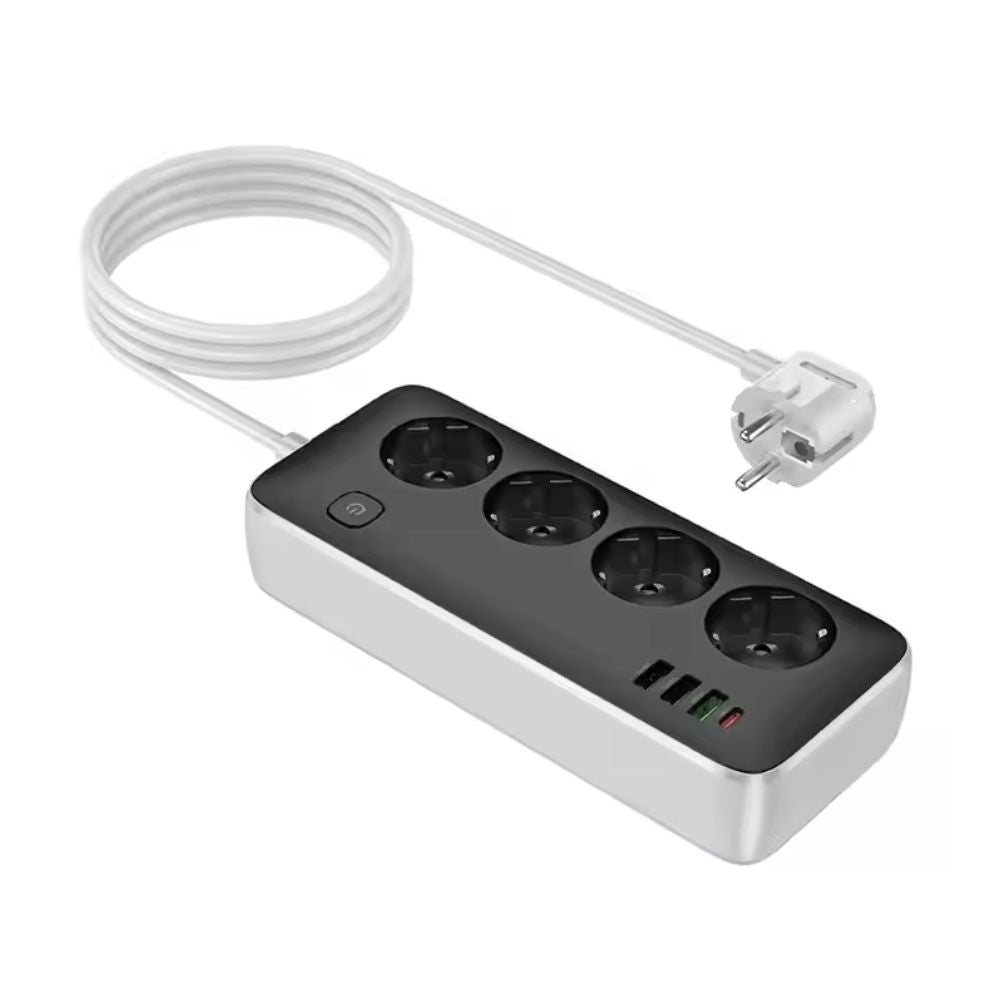 Equipped with two EU-standard AC sockets supporting up to 2500W, this power strip can handle high-consumption devices with ease. The integrated USB-C and USB-A ports feature fast-charging protocols including PD, QC, FCP, and AFC, allowing smartphones, tablets, and other compatible electronics to charge rapidly. With a 2-meter cable, it offers flexible placement in homes, offices, or shared spaces, while the compact form ensures it fits neatly on desks, shelves, or walls.