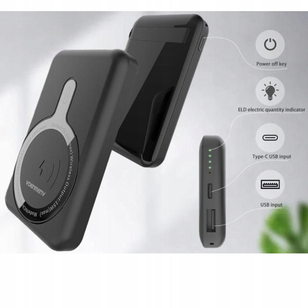 Power bank 10000mAh with Magsafe Denmen PD+15W Black