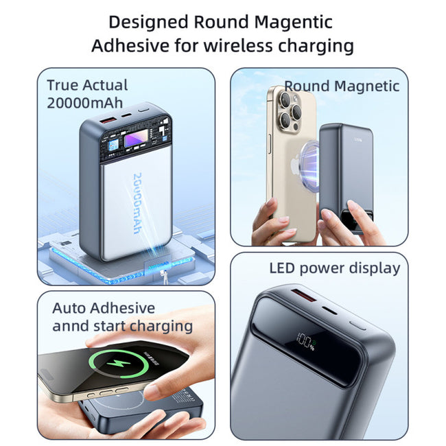 Yesido YP50 PD+ USB 35W Fast Charging LED Power Display 20000mAh Magnetic Wireless Charging Power Bank
