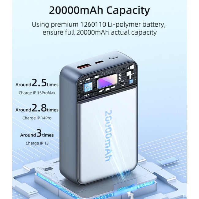 High-Capacity Battery: The 20000mAh battery provides ample power to charge your devices multiple times, making it perfect for travel, outdoor activities, or emergencies.