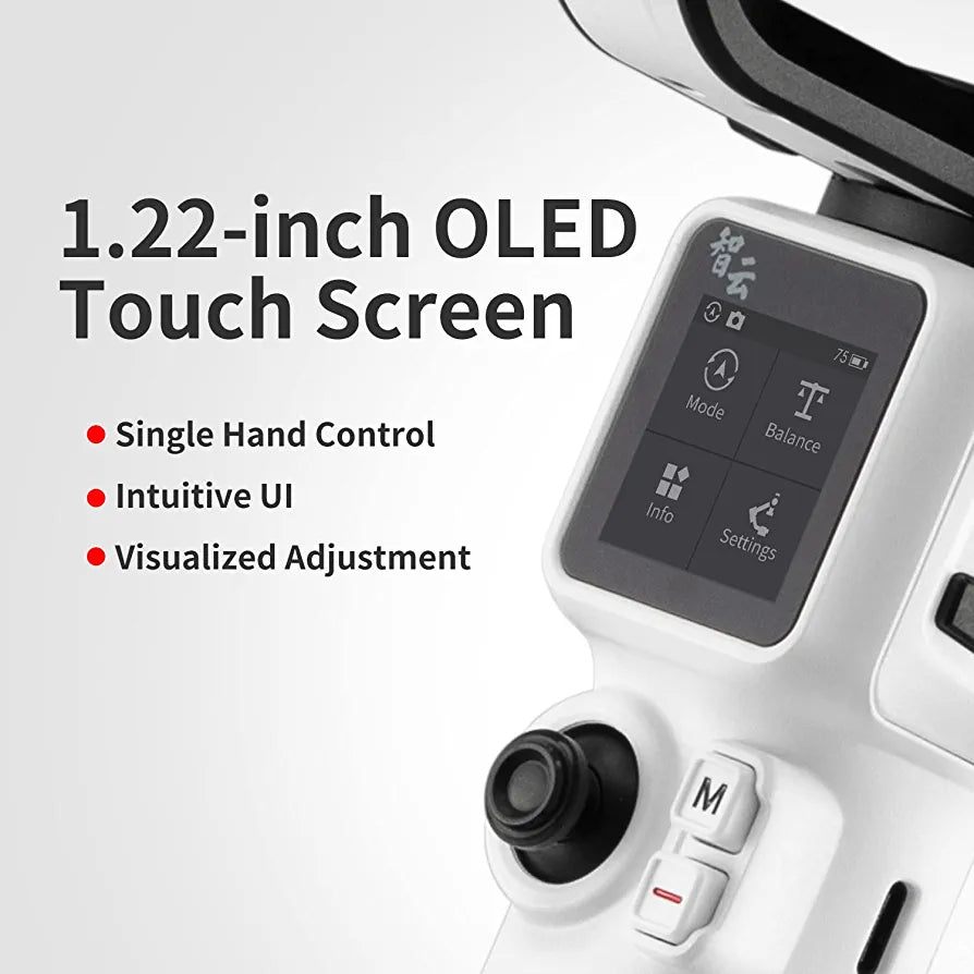 Over built-in Wi-Fi, the gimbal can sync up with a Wi-Fi-enabled camera that supports remote zoom, shutter, and video start/stop control, or you can utilize a camera control cable and the USB Type-C port on the baseplate to control the camera shutter and also power the camera. Over built-in Bluetooth, the camera syncs up with a free-download ZY Play mobile app for iOS and Android for additional capabilities. The app provides remote control over many functions of the gimbal and has filmmaking features such as time-lapse, panorama, and slow-motion capture. The integrated LED light allows you to utilize a fill light for your subject without the requirement of external lights.