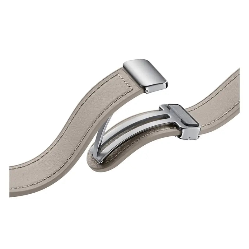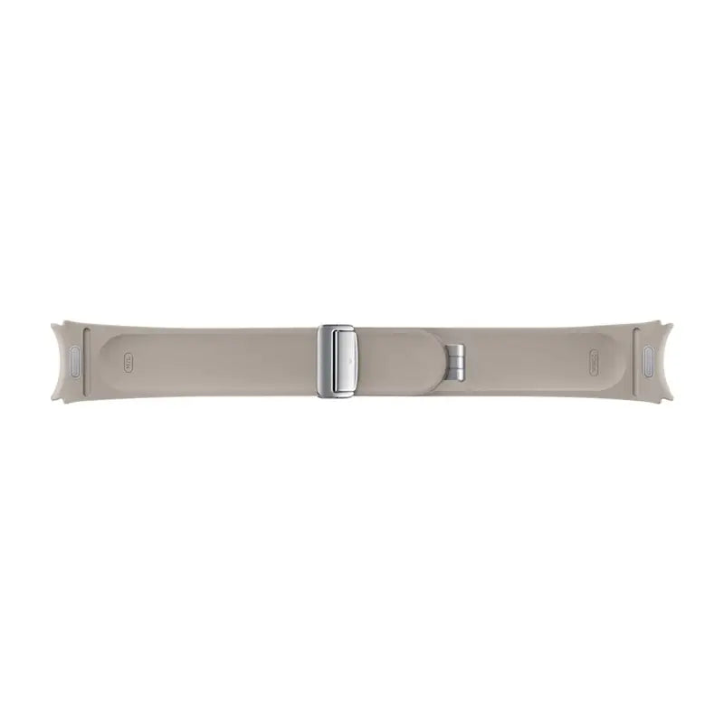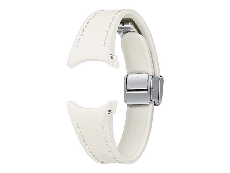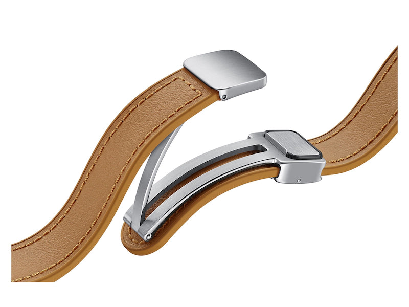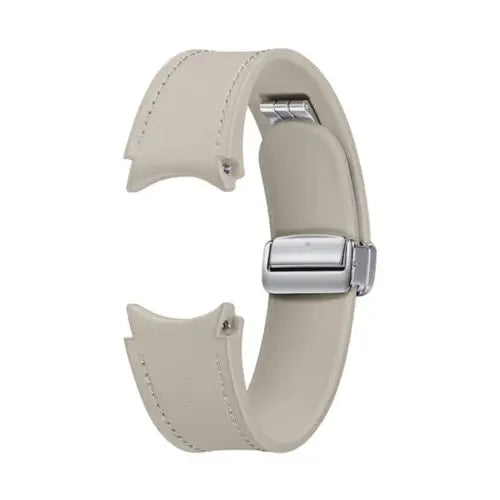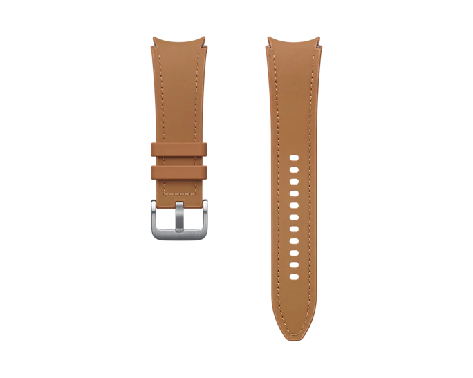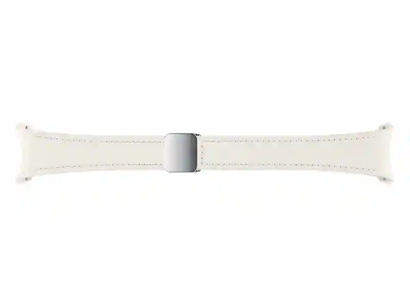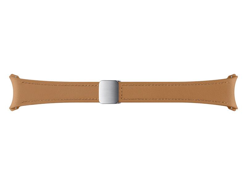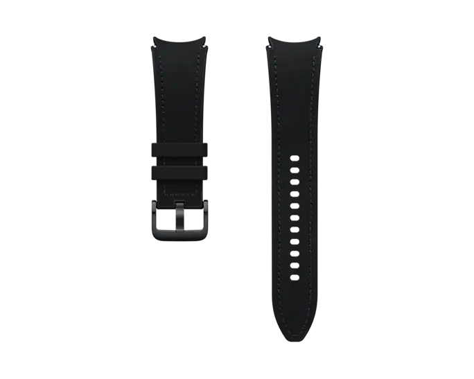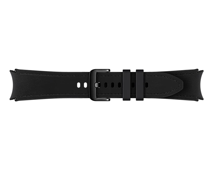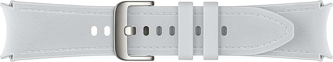 SAMSUNG Galaxy Watch 6, 5, 4 Series Hybrid Eco Leather Band, T-Buckle Closure for Men and Women, Smartwatch Replacement Strap, Durable, One Click Attachment, Small/Medium, ET-SHR95SSEGUJ, Silver FASHIONABLE. FUNCTIONAL. FEEL-GOOD STYLE: Crafted using a blend of FKM and material partially derived from plant-based sources, the Hybrid Eco-Leather* Band is both durable and environmentally conscious VERSATILE FOR WORK & WORKOUTS: Its classic T-buckle design provides a secure fit so you can wear it to work, the gym or any place your day might take you** CLICK. SWAP. REPEAT: Refresh your look in an instant with a stylish new collection of bands for Galaxy Watch6 that release with just one click; Hold down the release button on the Hybrid Eco-Leather Band, remove it and swap it out for another GALAXY WATCH COMPATIBILITY: Compatible with Galaxy Watch4 Series or later (sold separately) Product information Product Dimensions 1.06 x 4.72 x 0.43 inches Item Weight 0.84 ounces ASIN B0C81RTKD9 Item model number ET-SHR95SSEGUJ Customer Reviews 4.5 4.5 out of 5 stars 901 ratings 4.5 out of 5 stars Best Sellers Rank #1,756 in Cell Phones & Accessories (See Top 100 in Cell Phones & Accessories) #123 in Smartwatch Bands Special features Durable Other display features Wireless Color Silver Whats in the box top strap, bottom strap Manufacturer Samsung Date First Available July 26, 2023 Units 1 Count Product Description Crafted using a blend of FKM and material partially derived from plant-based sources, the Hybrid Eco-Leather* Band is both durable and environmentally conscious. Its classic T-buckle design provides a secure fit so you can wear it to work, the gym or any place your day might take you.** Refresh your look in an instant with a stylish new collection of bands for Galaxy Watch6 that release with just one click. Simply hold down the release button on the Hybrid Eco-Leather Band, remove it and swap it out for another — it's that easy. *Made of synthetic leather material. The Hybrid Eco-Leather Band contains a minimum of 3.3% bio-based content (UL ECVP 9798), consisting of 66% bio-based content in the outer band. For more information, see: www.ul.com/services/environmental-claim-validation. **Compatible with Galaxy Watch4 Series or later (sold separately). SAMSUNG Galaxy Watch 6, 5, 4 Series Hybrid Eco Leather Band, Wide, Magnetic D-Buckle Closure for Men, Women, Smartwatch Replacement Strap, One Click Attachment, Medium/Large, ET-SHR94LNEGUJ, Indigo FASHIONABLE & FUNCTIONAL: Whether you're attending a business meeting or a workout class, the Hybrid Eco-Leather* Band fits the occasion; Its magnetic D-buckle design provides a secure fit and ensures easy wear and removal** ECO-CONSCIOUS & DURABLE: It contains a blend of FKM and material partially derived from plant-based sources, making it both durable and environmentally conscious CLICK. SWAP. REPEAT: Refresh your look in an instant with a stylish new collection of bands for Galaxy Watch6 that release with just one click; Hold down the release button on the Hybrid Eco-Leather Band, remove it and swap it out for another GALAXY WATCH COMPATIBILITY: Compatible with Galaxy Watch4 Series or later (sold separately) Product information Product Dimensions 1.02 x 5.43 x 0.57 inches Item Weight 0.701 ounces ASIN B0C81R723L Item model number ET-SHR94LNEGUJ Customer Reviews 4.5 4.5 out of 5 stars 901 ratings 4.5 out of 5 stars Best Sellers Rank #1,756 in Cell Phones & Accessories (See Top 100 in Cell Phones & Accessories) #123 in Smartwatch Bands Special features Durable Other display features Wireless Color Indigo Whats in the box top strap, bottom strap Manufacturer Samsung Country of Origin China Date First Available July 26, 2023 Units 1 Count Product Description Whether you're attending a business meeting or a workout class, the Hybrid Eco-Leather* Band fits the occasion. Its magnetic D-buckle design provides a secure fit and ensures easy wear and removal.** It also contains a blend of FKM and material partially derived from plant-based sources, making it both durable and environmentally conscious. Refresh your look in an instant with a stylish new collection of bands for Galaxy Watch6 that release with just one click. Simply hold down the release button on the Hybrid Eco-Leather Band, remove it and swap it out for another — it's that easy. *Made of synthetic leather material. The D-Buckle Hybrid Eco-Leather Band (ET-SHR94) contains a minimum of 1.7% bio-based content (UL ECVP 9798), consisting of 66% bio-based content in the outer band. For more information, see: www.ul.com/services/environmental-claim-validation. **Compatible with Galaxy Watch4 Series or later (sold separately).