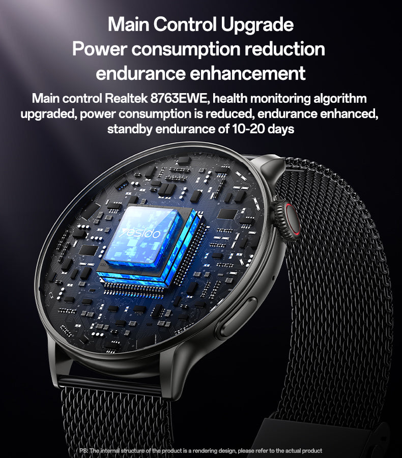 YESIDO IO31 Smart Watch full touch screen, Screen size 1.43 inch, Bluetooth 5.2, supports Android and iOS, Wireless charging.