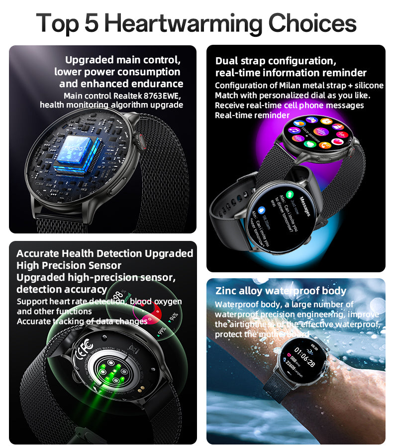 High-Definition Display: With a 1.39-inch screen and a resolution of 360*360, the watch offers clear and vivid images.