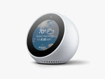 Introducing the all-new Echo Spot, the latest addition to Amazon’s lineup of Alexa-enabled devices. Echo Spot is a sleek new customizable smart alarmclock, featuring a variety of custom-designed clock faces and fun colors. It’s built for the nightstand, with a display that makes it easy to set and view alarms, see the time, weather, or song titles at a glance, and a directional speaker that delivers vibrant sound.