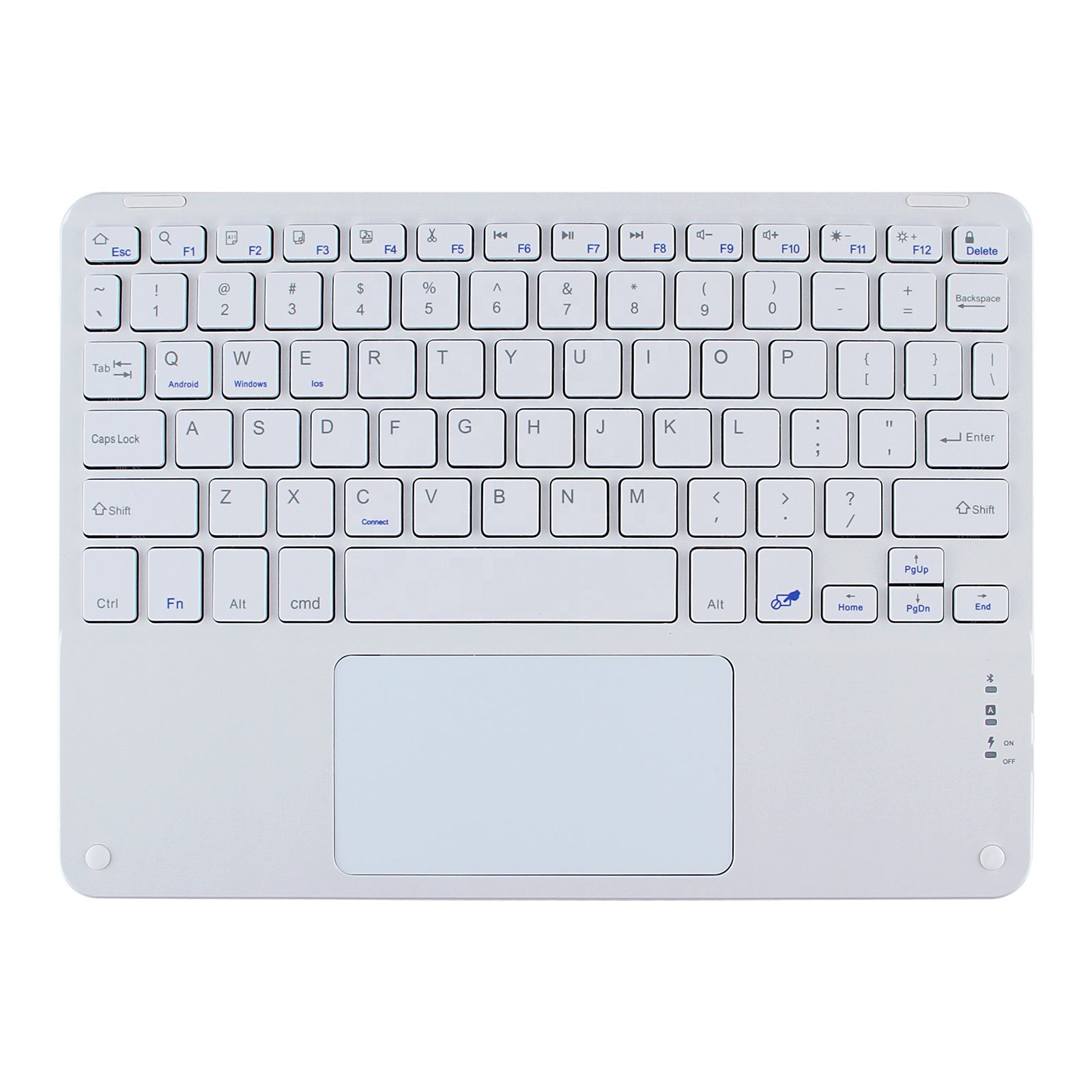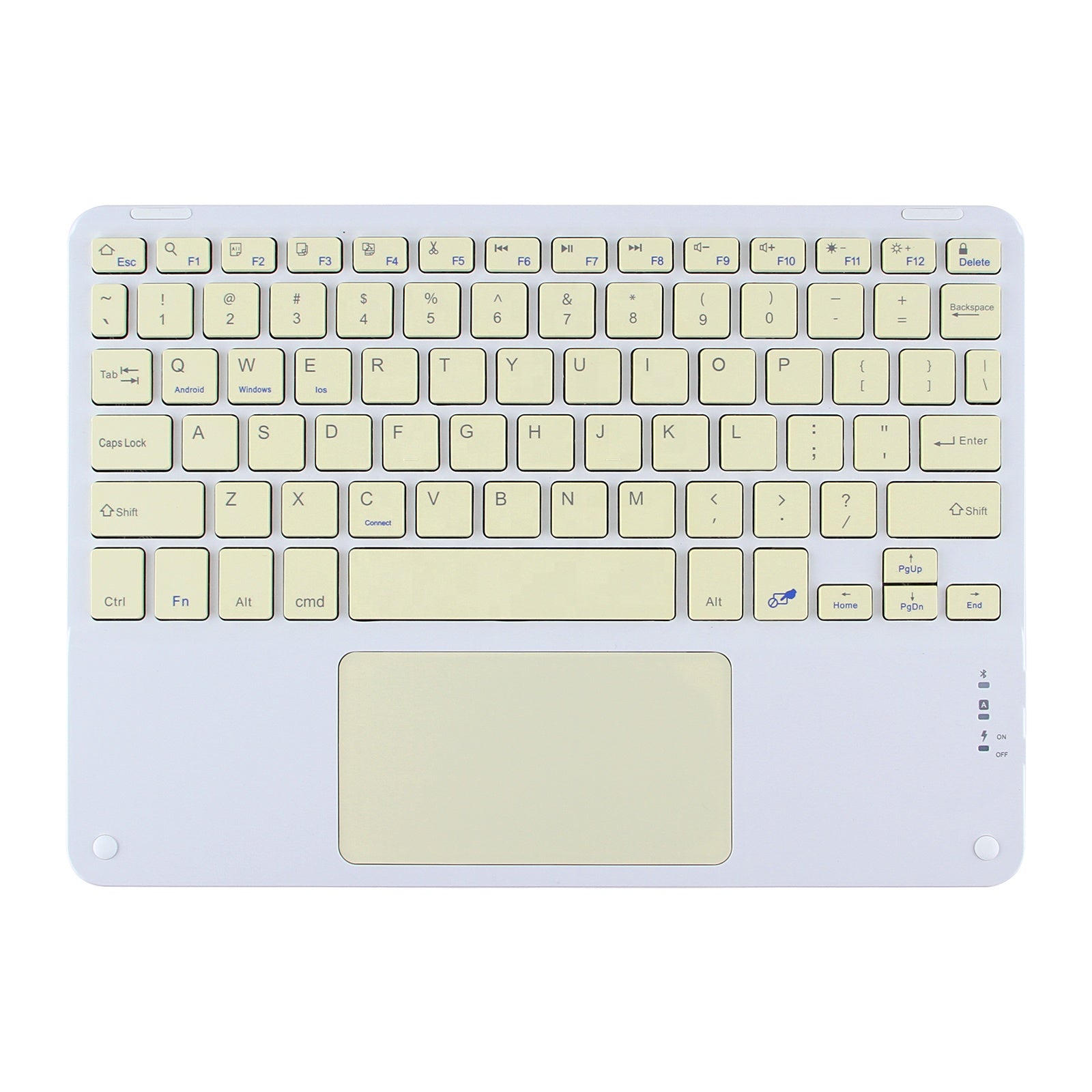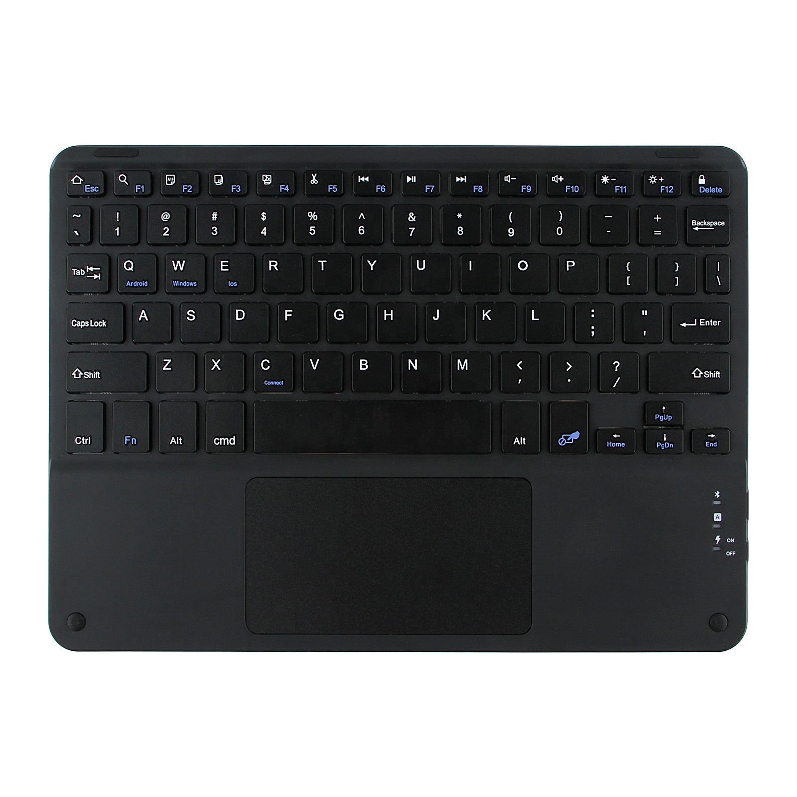 Keyboard connection method: 1. Turn on the ON/OFF switch. 2. Press the FN + C key at the same time, and the indicator of the Bluetooth will flash 3. Turn on the Bluetooth switch of a mobile device such as a tablet/smartphone, search for Bluetooth device, and the default Bluetooth name of the keyboard: Bluetooth Keyboard 4. Click the "Bluetooth Keyboard" on the tablet/smartphone/other Bluetooth enable devices, and press Enter to connect Keyboard Features: Responsive Trackpad Sensitive trackpad provide more efficient operation Scissors Key Make typing as comfortable as a laptop Type C Charging Port 2-3 hours charge, 30 days working time without light Light and Portable Easily be carried and packed in backpack what will you get: 1 x Wireless Keyboard 1 x USB Charging Cable (No Charger) 1 x User Manual.