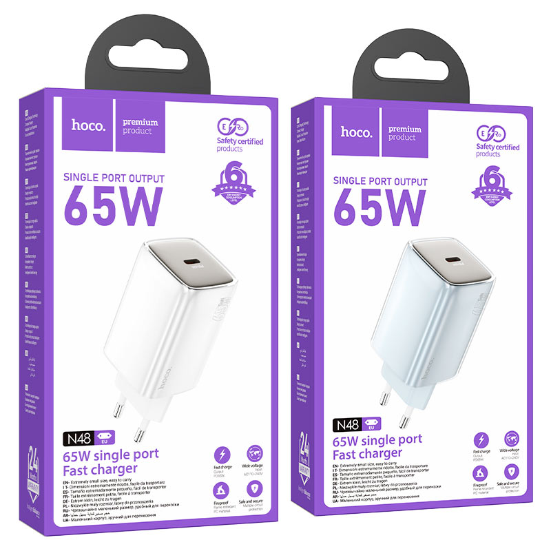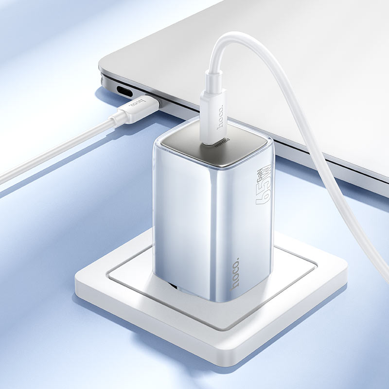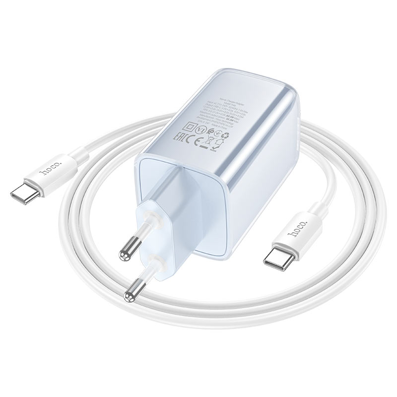1. Input: AC110–240V, 50 / 60Hz, 1.5A.2. Output:1 × Type-C – 5V / 3A, 9V / 3A, 12V / 3A, 15V / 3A, 20V / 3.25A – 65W max.PPS: 5.0 – 21V / 3A – 65W max.3. EU plug.4. Fast charging protocol support: for PD3.0 / SAM PPS 2.0 / PD65W / QC3.0 / QC2.0 / FCP / AFC / SCP and other fast charging protocols.5. Material: flame retardant PC. Housing with transparent shell.6. Set with 1m cable Type-C to Type-C.7. Sizes: 92.4 × 38.9 × 35.8mm.8. Weight: single charger weight – 136g, set with cable weight – 156g.