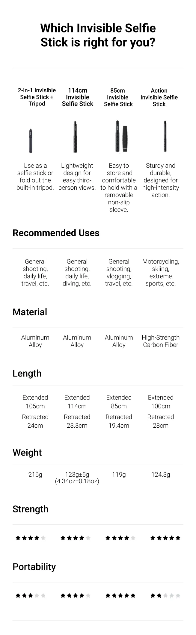 - Stronger than ever. Strong and stable, even in high-intensity action scenarios. Helps maintain a clean invisible selfie stick effect.
