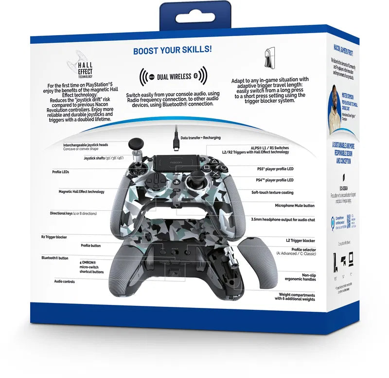 Discover the latest innovation from NACON, the REVOLUTION 5 PRO, designed for pro gamers seeking performances. Exceeding all expectations with its technology optimized for the PlayStation®5. Enjoy an enriched configuration interface, improved and ergonomic modular design, all wrapped in premium materials for unparalleled comfort.