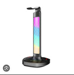 Porodo Gaming RGB Headphone Stand, Wireless Charging & USB-C Hub with Screen Lamp 5W