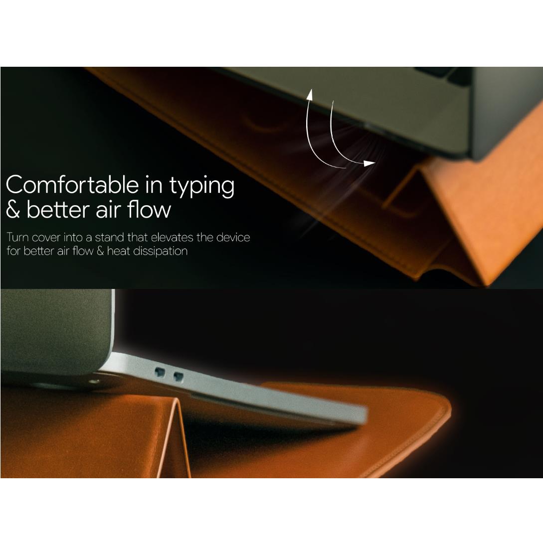 Comfortable to type on and better airflow. Turns the cover into a stand that elevates the device for better airflow and heat dissipation.
